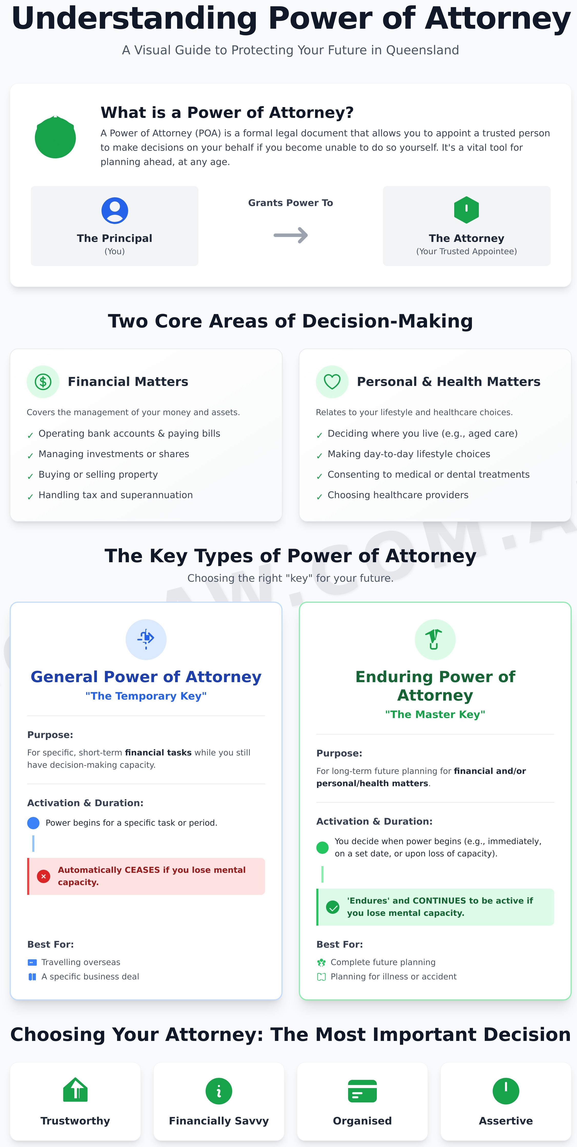 Thinking about the future can feel overwhelming, especially when legal terms like ‘Enduring’ and ‘General’ start to cloud the picture. It’s natural to worry about who will manage your affairs if you’re no longer able, and to fear that your personal wishes for your health and finances might be misunderstood. The process of setting up a power of attorney can seem daunting, leaving many people in Queensland unsure where to even begin.